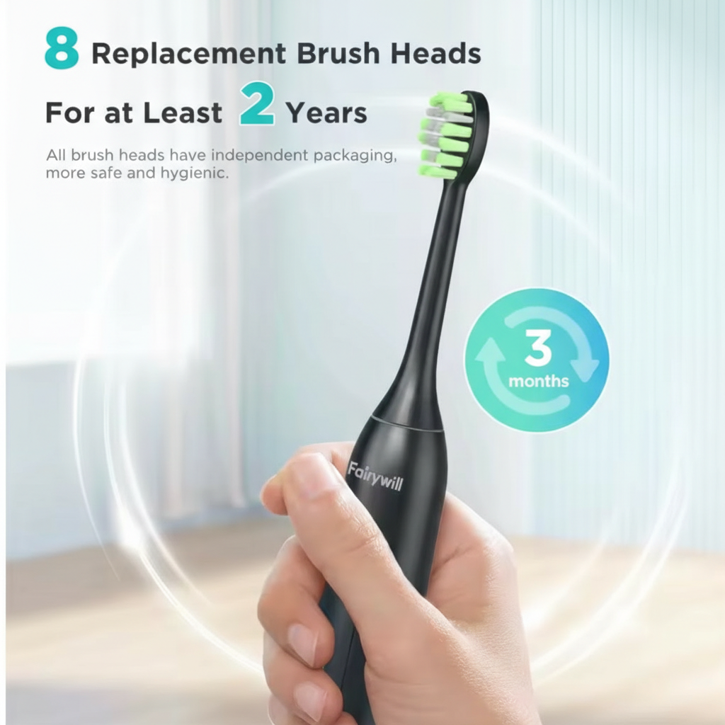 Ideal for adults who want a deeper clean than manual brushing can offer, the Fairywill FW-Y05 helps remove surface stains, improve gum health, and keep your breath fresher—making your daily brushing routine more effective and convenient.